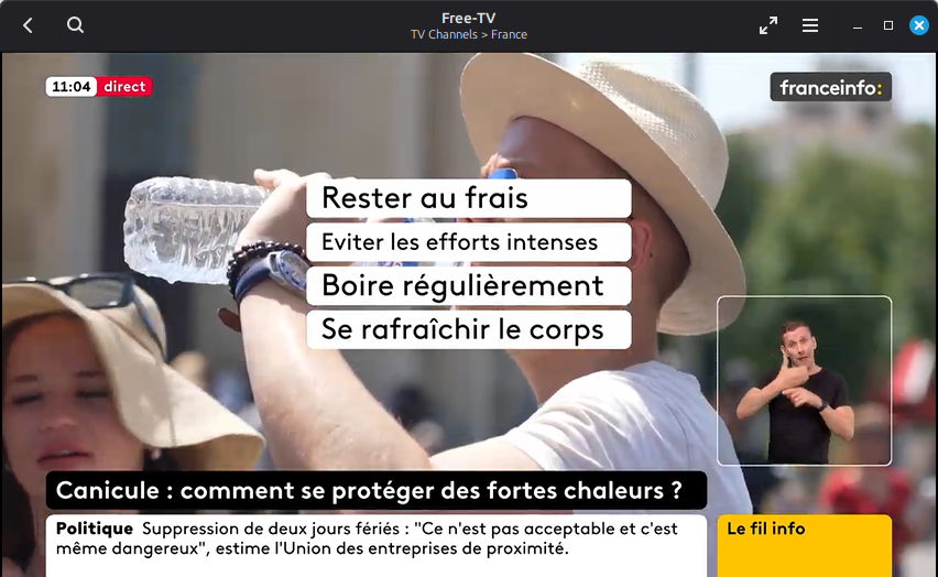 In "Borderless Mode" hypnotix even hides the window borders and the titlebar. You can still move your window around with the mouse by pressing the 'Alt' key. This is ideal to watch TV when your window is tiled to the side or the corner of the screen.